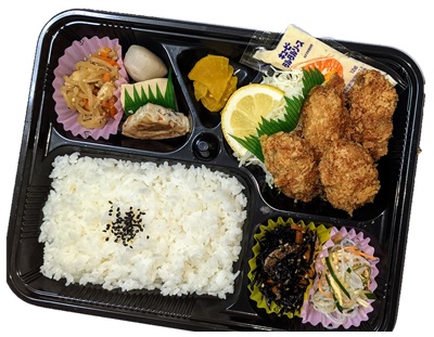 お知らせとお詫び最近人手不足のため、配達の遅延や配達をお断りする事態が頻発しています。誠に申し訳ございません。お客様にはご迷惑をお掛けしておりますが、何卒ご理解を頂きますよう宜しくお願い申し上げます。 お知らせ 都合により10月22日(水)は午後1時半までの営業とさせていただきます。 又、10月29日(水)は臨時休業とさせていただきます。ご迷惑をお掛けしますが、よろしくお願いいたします。 お持ち帰り限定弁当!! 販売中 550円 ※ご来店限定、すぐお持ち帰りいただけます ※AM11時より販売、売り切れ次第終了します 季節メニュー カキフライ弁当の販売は終了しました |